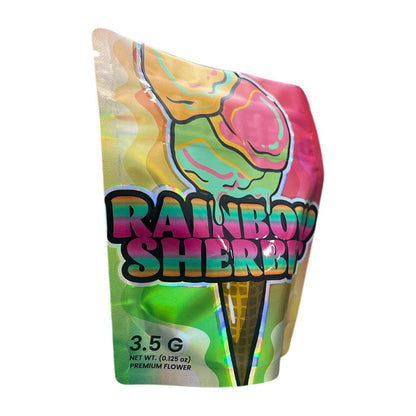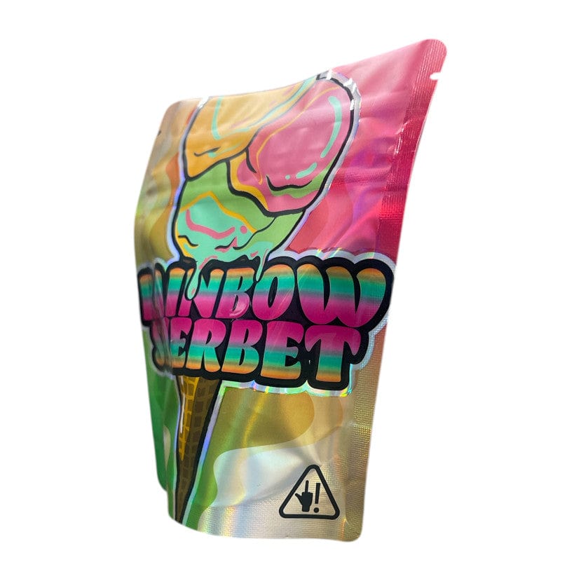 Showcase your top-tier cannabis strains with the Bag King Rainbow Sherbet Mylar Bag, a packaging solution designed to dazzle and protect. This premium 1/8 oz (3.5g) bag is the perfect tribute to the Rainbow Sherbet strain – an evenly-balanced hybrid marijuana strain born from Champagne and Blackberry genetics. It's a packaging masterpiece crafted to elevate your premium cannabis flower and captivate your customers from the first glance, complete with a clear window to showcase the quality within.